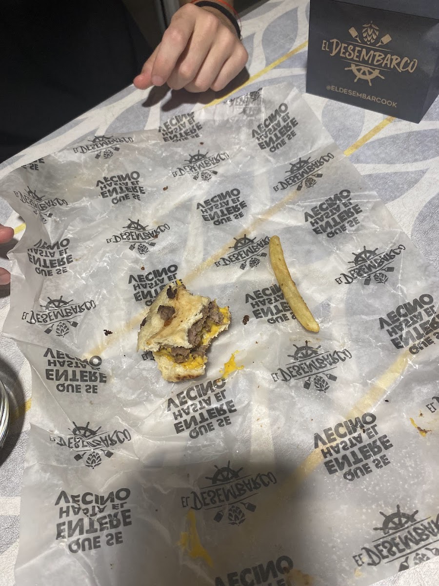2 carnes 100gr c/u. 2 cheddar , pepinillos, salsa 1/4 de libra, pan de papa. papas c/ chimichanga